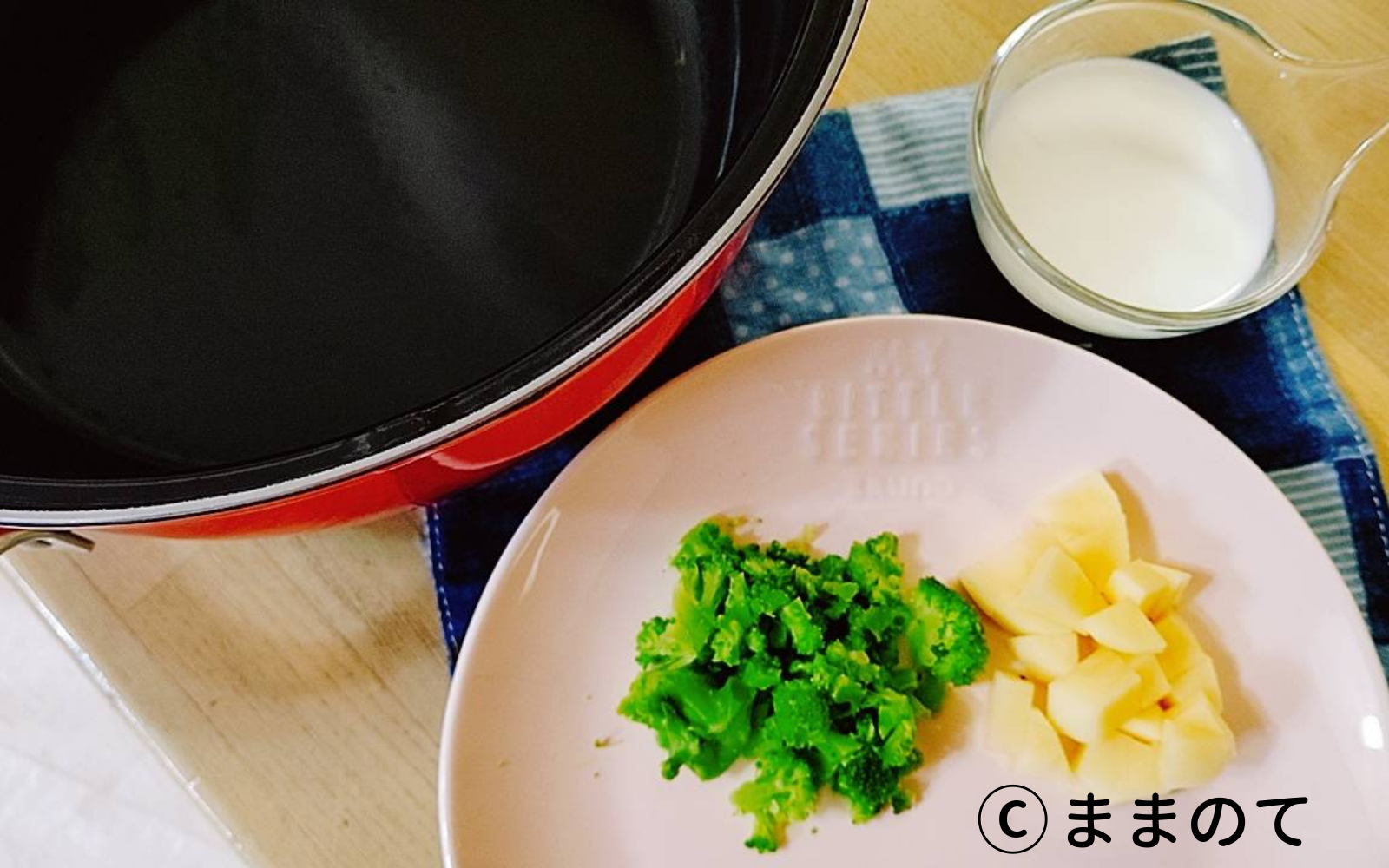 1.ブロッコリー、じゃがいもをやわらかくゆでる