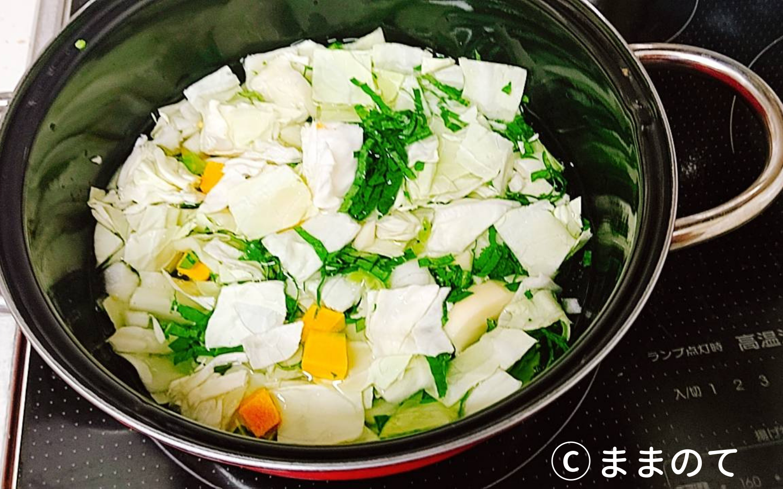 2.鍋に野菜を入れ、ひたひたの水を張り、火にかける