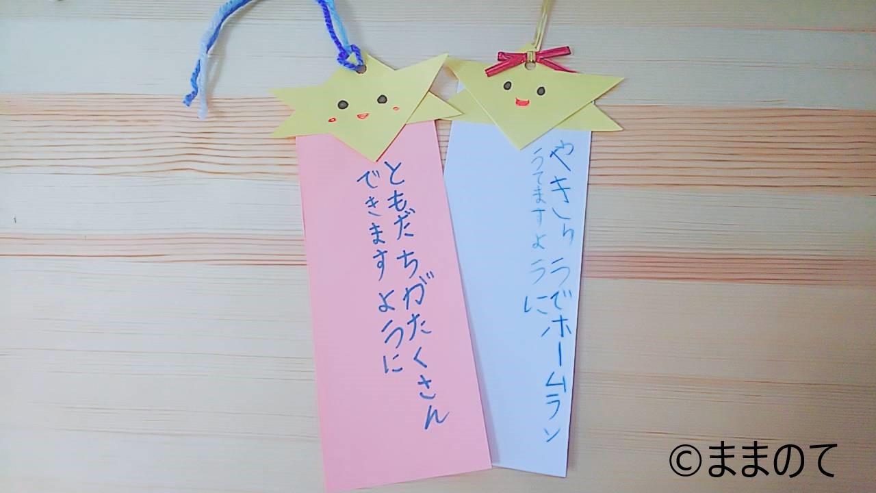 短冊は一般的な長方形にこだわらず、親子で製作したものやママのオリジナル短冊を使用する方法もおすすめです。絵を通じて、子どもの願いごとや夢がわかるかもしれませんね。