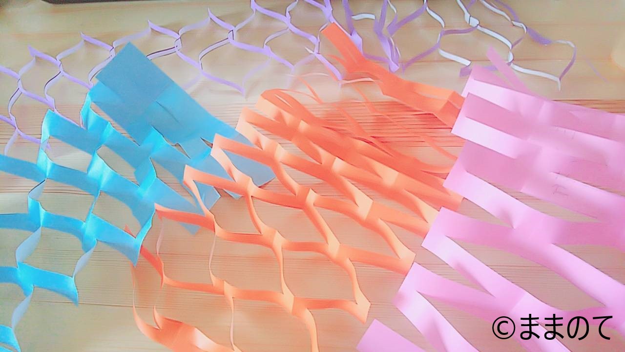 七夕のモチーフに「くるくるあみ」があります。はさみやのりを使用する製作アイデアなので、最初はママやパパが子どもに手を添えて使い方を教えてあげましょう。
