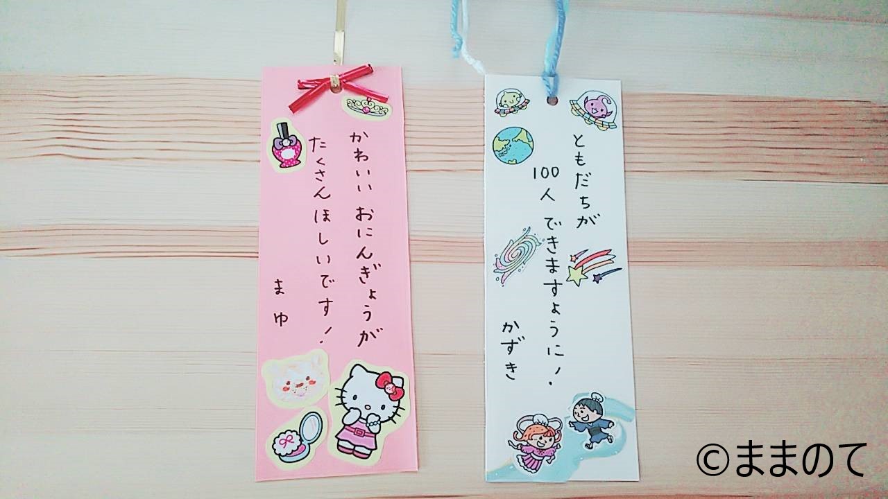 笹の葉に付ける短冊は、100均や文具店で購入できます。