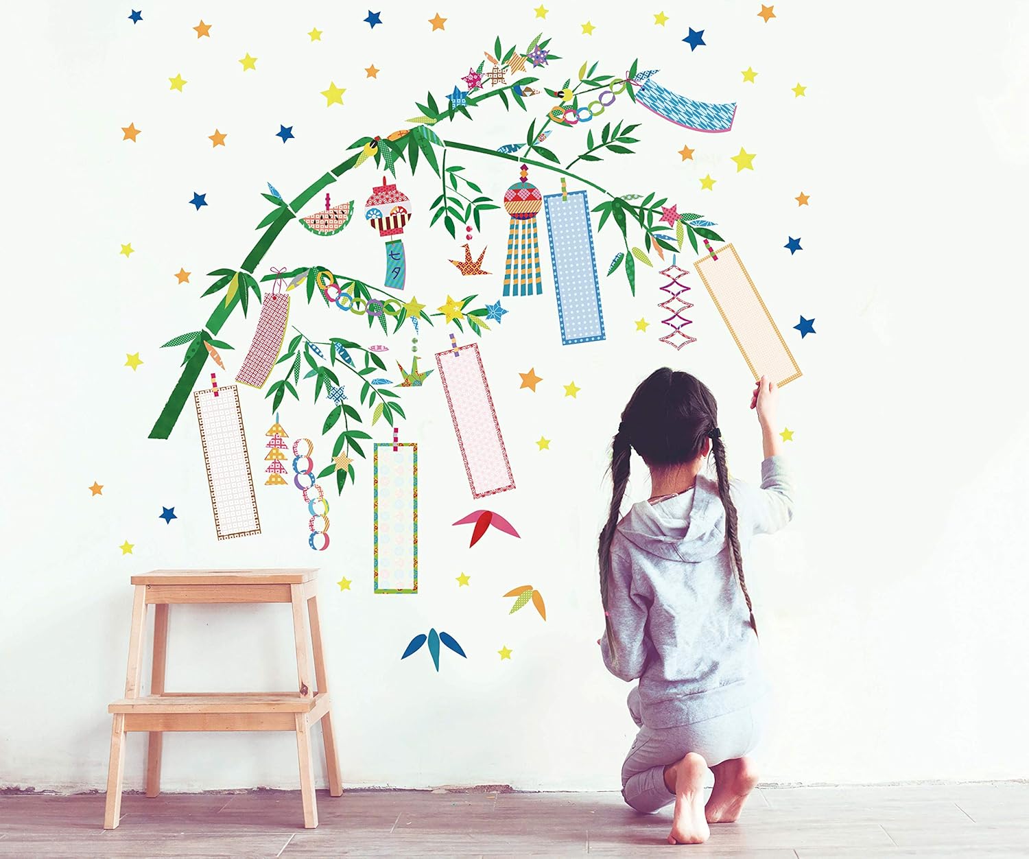 自宅やベランダに笹の葉を飾るスペースが限られている場合、「ウォールステッカー」を利用して短冊や七夕のモチーフを飾ってみましょう。壁に貼ったステッカーは、きれいにはがして次の年も使い回すことができますよ。