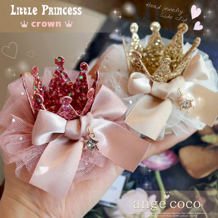 頭に王冠をのせているようにみえるヘアクリップです。金属製のクリップはリボンでくるまれ、滑り止めがついています。リボンなどがないシンプルなデザインなので、誕生日記念の撮影に男の子が身につけてもかわいいですよ。