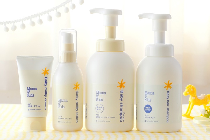 ママ&キッズのベビースキンケアは、皮膚科医・小児科医の協力のもと開発された、赤ちゃんのためのスキンケアシリーズです。生まれてすぐの赤ちゃんでも使える低刺激タイプのスキンケアアイテムで、肌へのやさしさにとことんこだわっています。