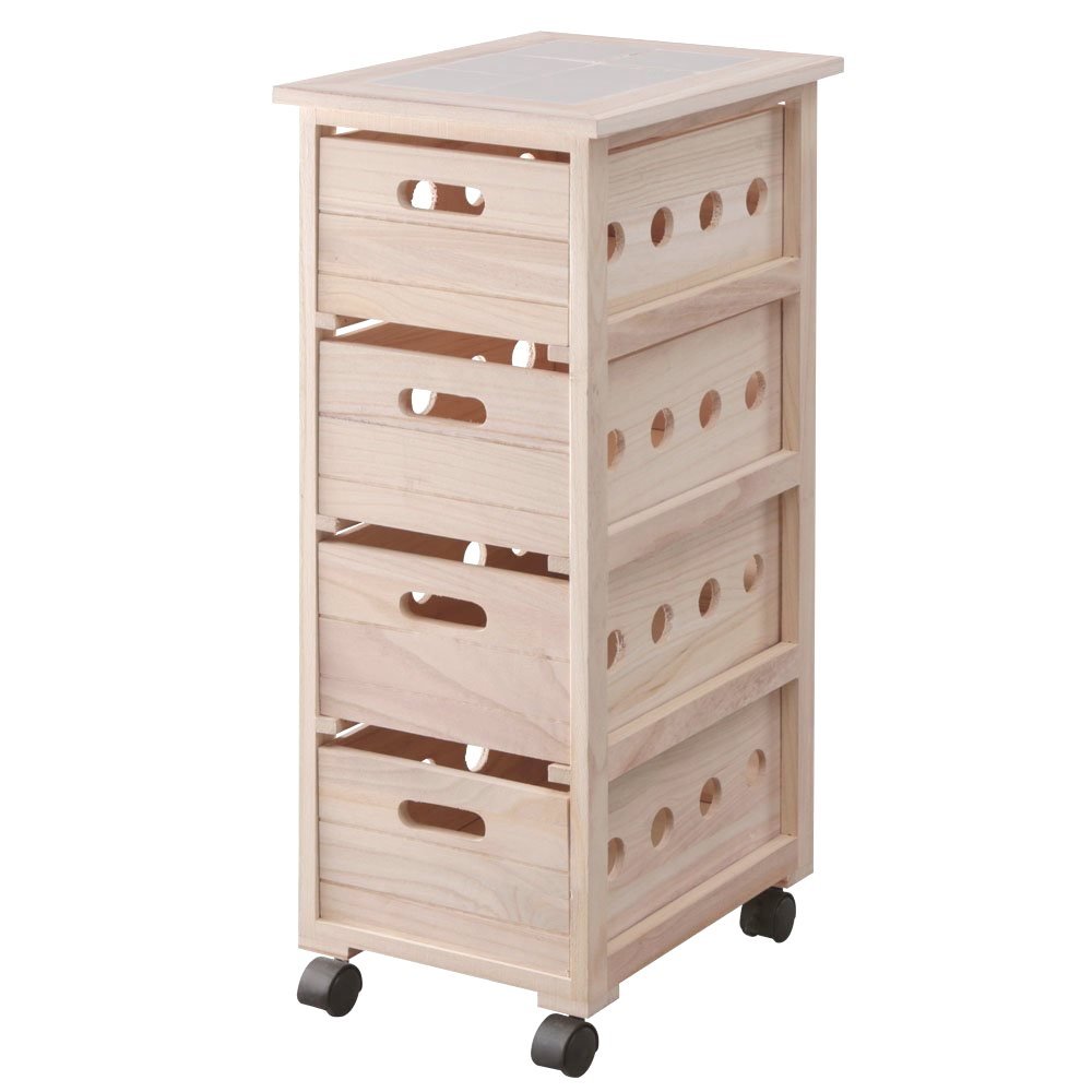 調湿作用があるといわれている桐無垢で作られたワゴンは、防虫効果が期待できるのがうれしいですね。おむつやベビー服、赤ちゃん用のタオルなどをまとめて収納するのにおすすめです。天板にはタイルがついているおしゃれなデザインなので、部屋のインテリアにもなじみます。