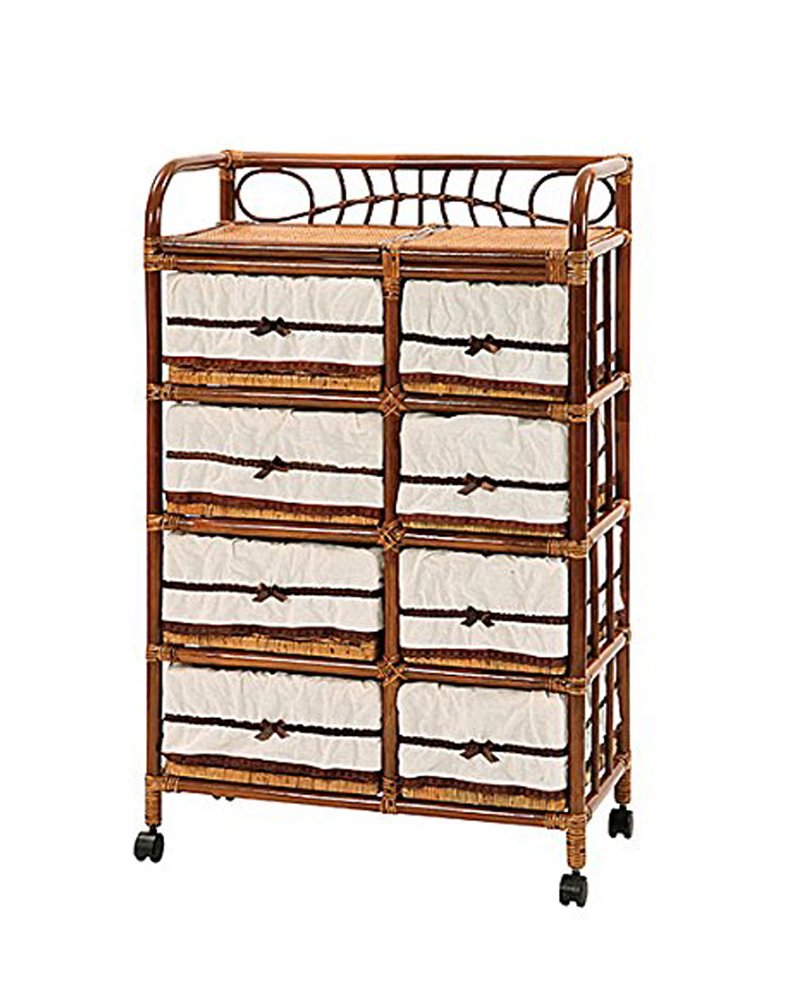 天然素材ラタンで作られたワゴンは、通気性に優れているのが特長です。収納力たっぷりなので、おむつなどのベビー用品だけでなく家族の衣類やタオルなどの収納にも活用してはいかがでしょうか。左上の天板部分が開閉する仕組みになっているので、おむつを片手で取り出すことができます。
