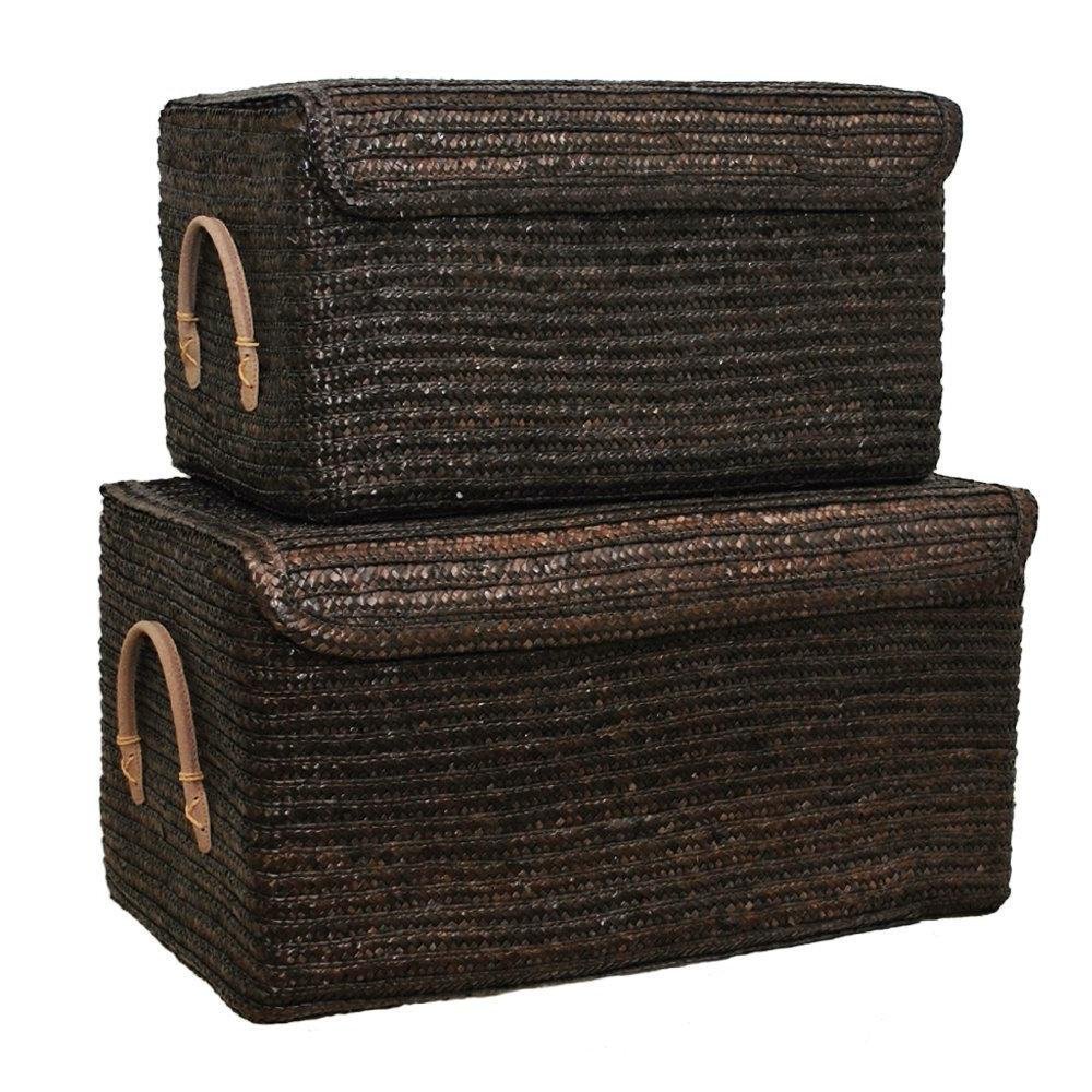 シンプルなデザインのふた付きバスケットは、場所を選ばずおしゃれに置いておくことができます。サイズの違う2種類のバスケットがセットになっているので、ベビー用品をまとめて収納しておけますよ。バスケット内だけでなく、ふたの裏側にも布カバーがついているため、カゴの隙間からほこりが入ることも少ないでしょう。