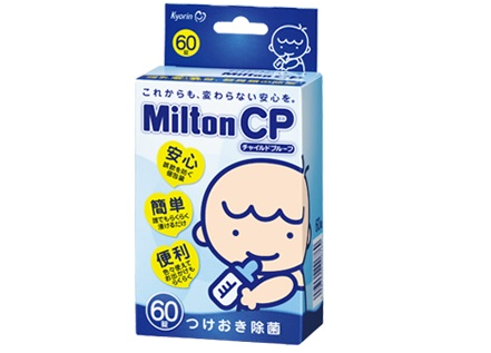 つけ置き除菌の手順はとてもシンプルです。ベビー専門店やドラッグストアでも買うことができる錠剤タイプの「Milton CP」は、赤ちゃんから目が離せない忙しいママやパパでも簡単に使うことができます。