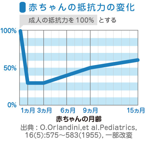 赤ちゃんの身体はとても繊細です。抵抗力が弱く、1歳で大人の半分ほどしかありません。赤ちゃんは大人と比べてバイ菌の影響を受けやすく、体調を崩した場合は回復もしづらいのです。