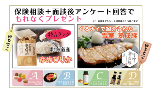 ※ プレゼント対象者は初めて当社で保険の相談をされた方に限ります。弊社でご相談歴があるお客様はキャンペーンの対象とはなりませんのでご注意ください。
