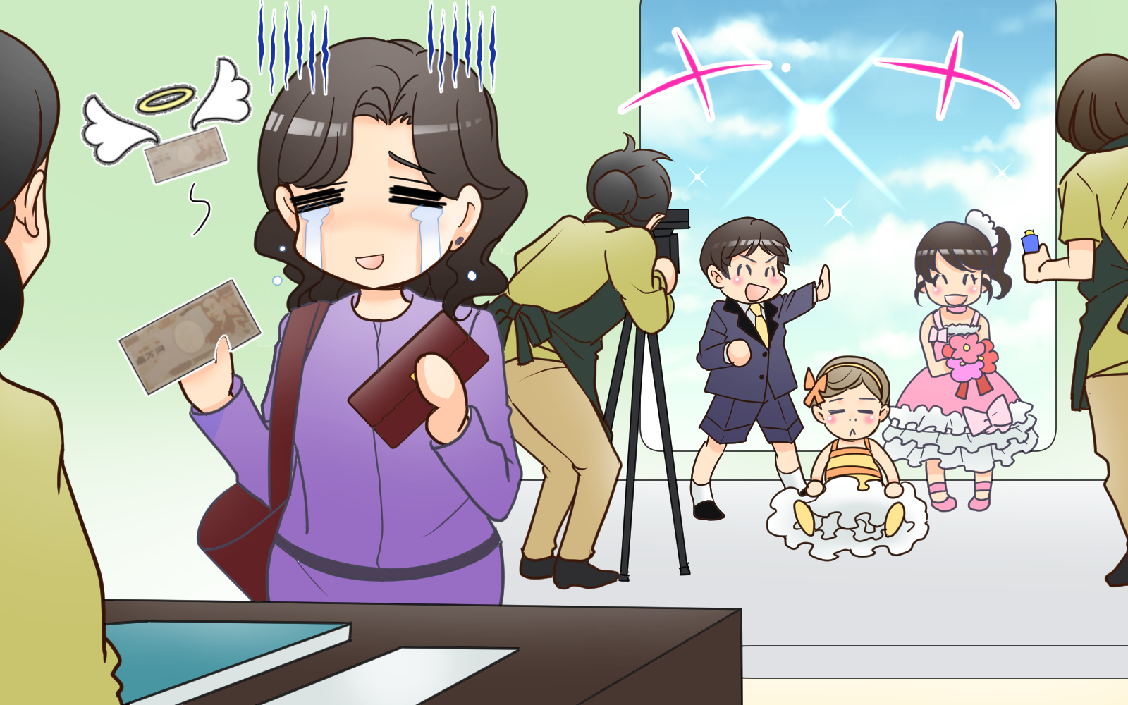 きょうだいで記念撮影したのですが、お会計を確かめてびっくり。衣装代が一人ずつ別で、予算を大幅に超えてしまいました。子どものハレの日だから、という気持ちと、こんなに費用がかかるのか、という気持ちの板挟みで複雑な心境でした。