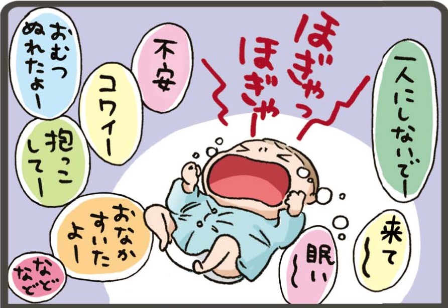 たとえば、赤ちゃんがうんちをしたら「うんちが出たね、おしりが気持ち悪いね」と声をかけておむつ替えをしてあげたり、ひとりでいた赤ちゃんが泣き出したら「寂びしかったね」と話しかけたりしてみてください。大人が話しかけることで、赤ちゃんは自分の感情を表現する言葉を覚えていきます。