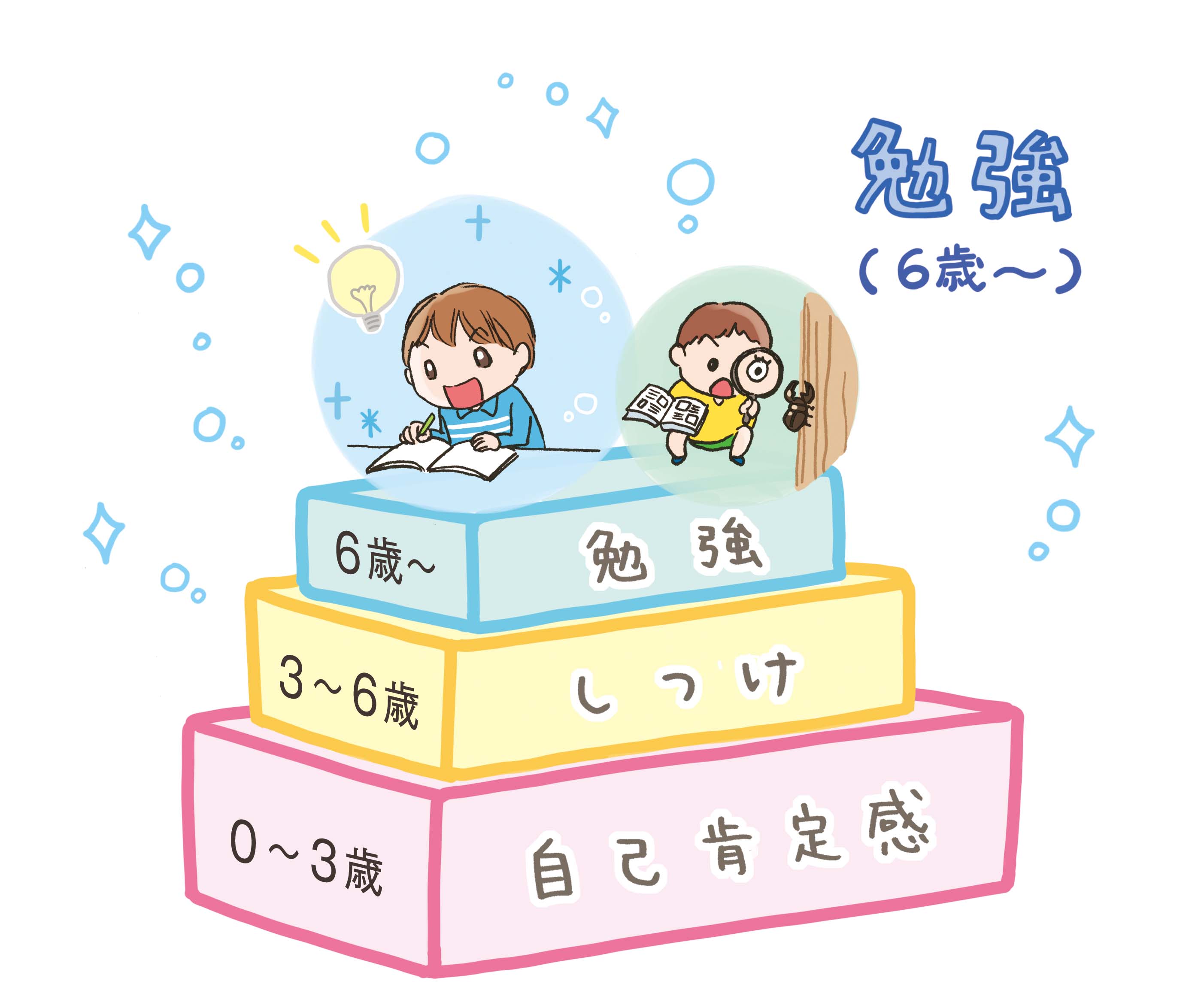 さらに、6歳頃からは小学校入学とともに勉強が始まります。自己肯定感が育まれ、ある程度しつけられた子どもには、自然といろいろなことに対する好奇心が生まれます。そのため、勉強したことがよく身につくのです。