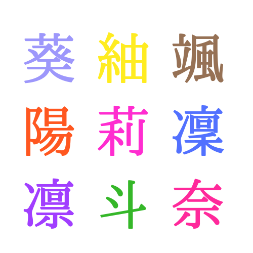 | 葵凜 | ありん(12,15) | 依織凜 | いおり(8,18,15) |