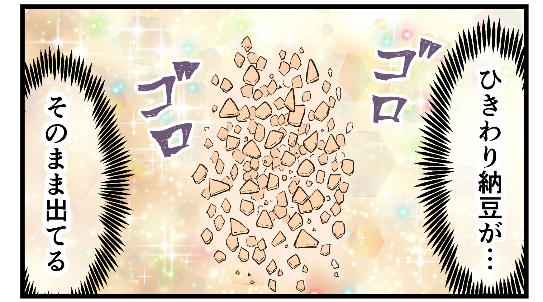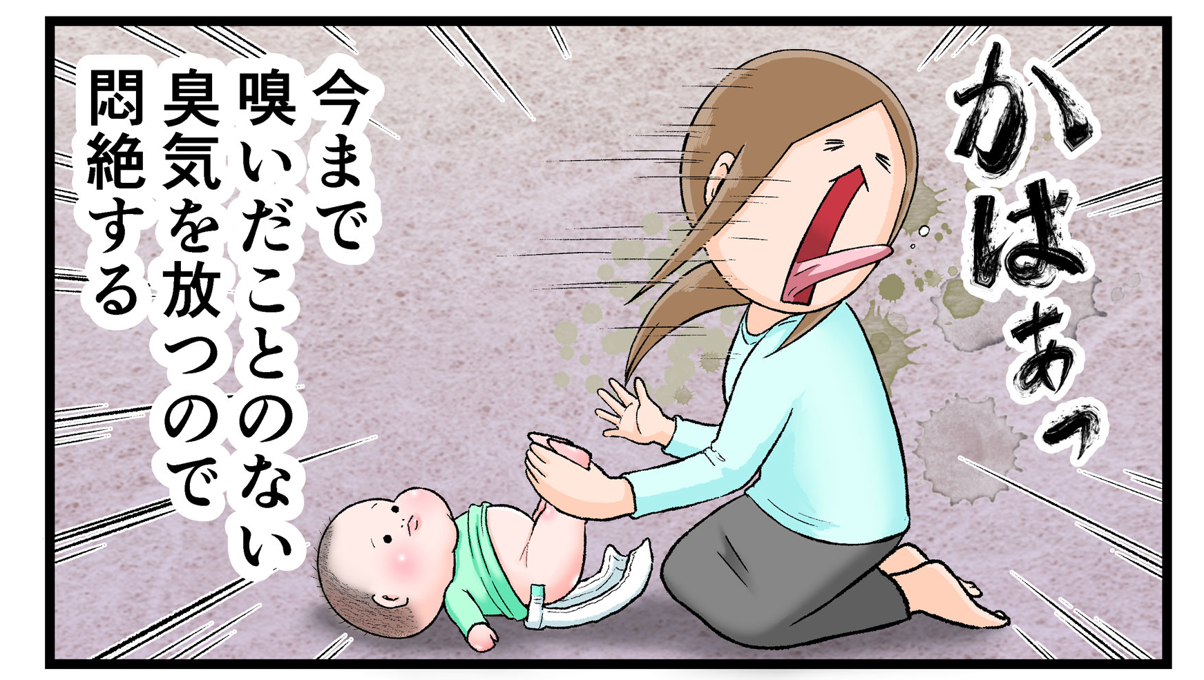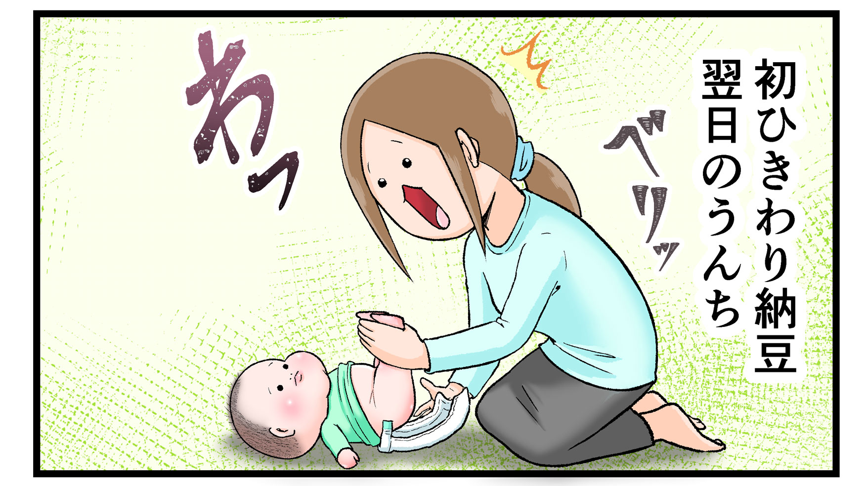 納豆を食べ始めた最初のころは、おむつを開けた瞬間においに悶絶していましたが、慣れたら平気になりました。でもおむつ入れバケツのふたを開けるときは、いまだに4コマ目のように悶絶しています(笑)