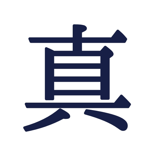 「真」は、嘘や偽りがない様子、真面目、立派など、さまざまな意味があります。「真」という漢字は「眞」の旧字体で、「さじ」の象形と鼎(かなえ)という中国の土器を表しています。さじで鼎に物を詰め、その中身が一杯になって「ほんもの・まこと」という意味が生まれたといわれています。そのほかにも、さまざまな説があります。