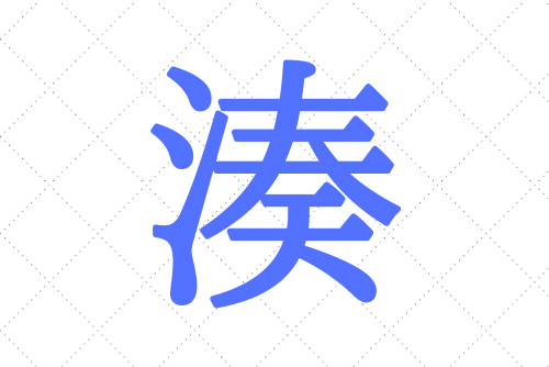 「湊」という漢字には、みなと(港)や水の出入り口、物や人が集まる場所という意味があります。もともとは、人にものを差し出すという意味の「奏」にさんずいが付き、湊という文字が生まれました。