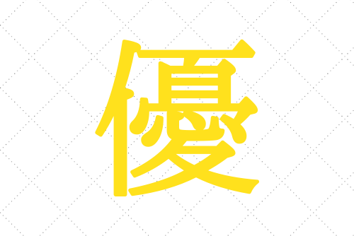 | 音読み/訓読み/名のり | ユウ/やさ(しい)、すぐ(れる)、まさ(る)/ま、まな、う、ひろ、まさ、まさる、ゆ、ゆう、ゆたか、しゅう |