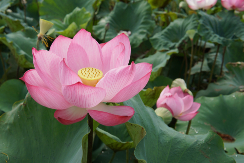 「蓮(はす)」が育つのは、池や沼の泥の中です。泥水の中から水の上へと茎をのばし、美しい花を咲かせます。仏教の経典には、このような「蓮」の生体に由来した「泥中の蓮(でいちゅうのはす)」という言葉があります。汚れた環境の中でも、周りに染まらず清く正しくある状態を指すたとえです。正しいことばかりとは限らない、社会を生きる力に通じますね。