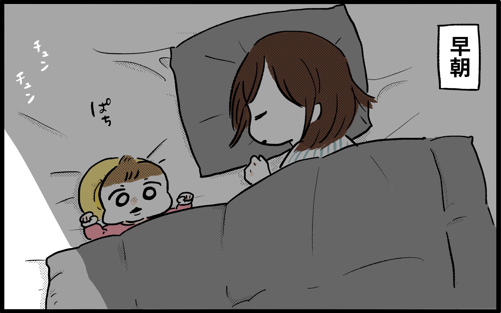 Instagramで大人気のchiikoさんの育児マンガ! 子どもが先に起きた時点で、ママの戦いは始まっていて…?