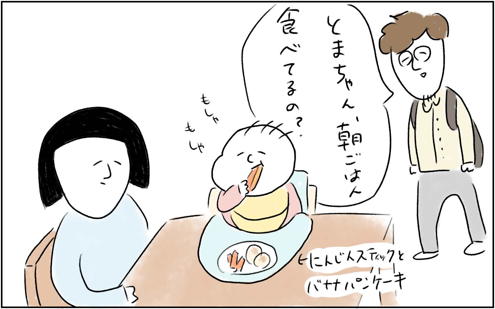 Instagramで大人気のとまぱんさんが描く、ゆる育児マンガ! 朝のわずかなパパとのふれあい時間も、とまちゃんはマイペースです。笑