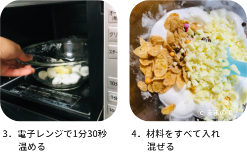 ・好みの食材(ナッツ、コーンフレーク、レーズンなど)