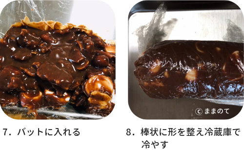 8.棒状に形を整え、粗熱が取れたらしっかり固まるまで冷蔵庫で冷やす