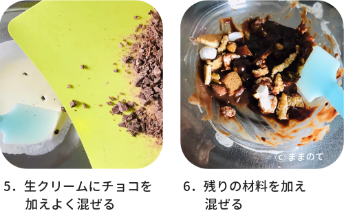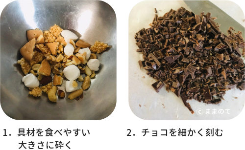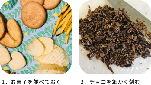 ・好みの具材(マシュマロ、ビスケット、ナッツ、せんべいなど)