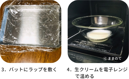 4.生クリームを耐熱ボウルに入れレンジで30秒程度温める
