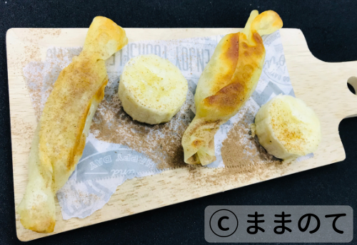 餃子の皮があればデザートもおつまみも簡単に作れます。多めの油で揚げ焼きするとパイ風のサクサク食感が楽しめますよ。餃子の皮でバナナを包む作業は、子どもでもお手伝いしやすいでしょう。