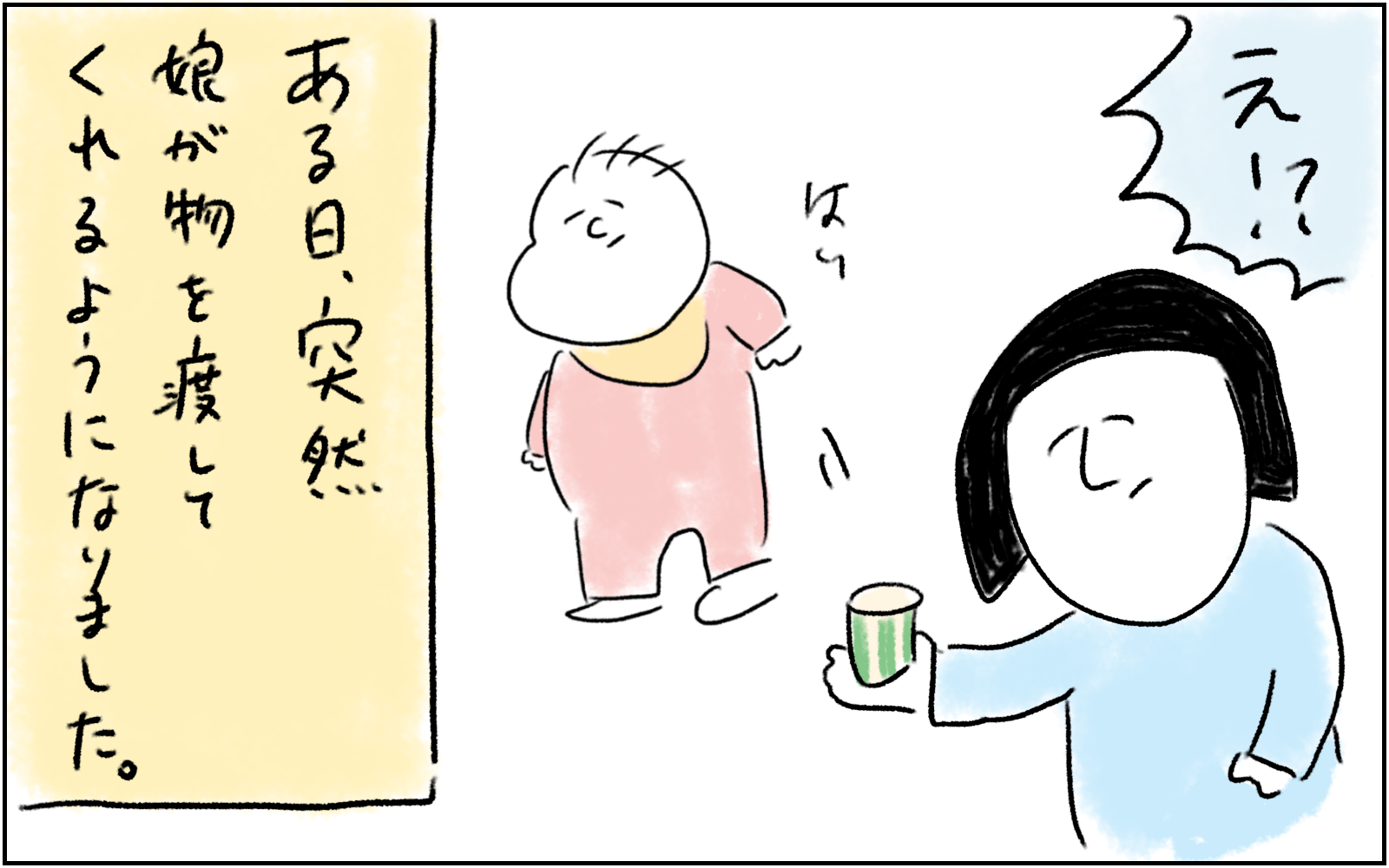 Instagramで大人気のとまぱんさんが描く、ゆる育児マンガ! いろいろな物を手渡してくれるようになり…?