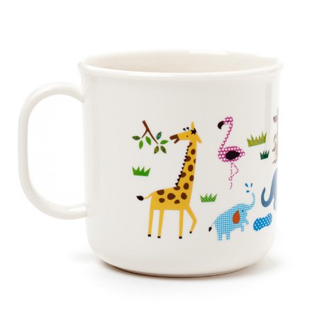プラスチック製で軽く、子どもが持ちやすいコップです。サバンナで動物が行進している絵柄は、シンプルでかわいく、親しみやすいデザインといえるでしょう。