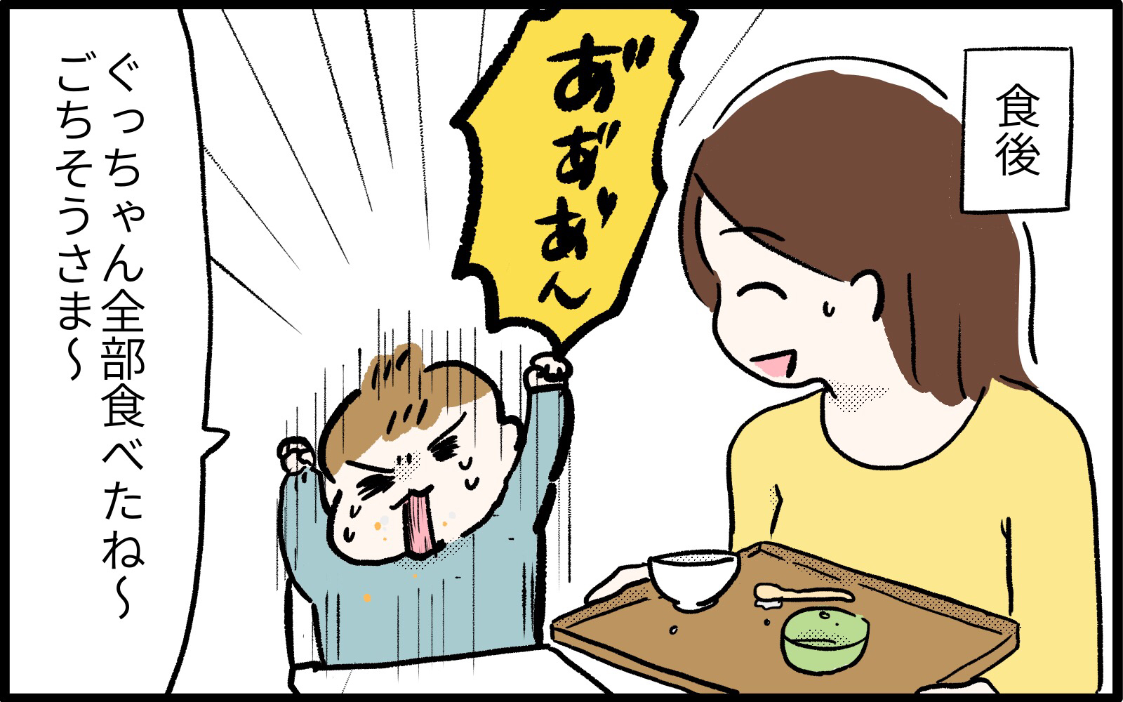 Instagramで大人気のchiikoさんの育児マンガ!食後に号泣しちゃう、ぐっちゃん…。「#12」のお話と、ぜひあわせてお楽しみください。