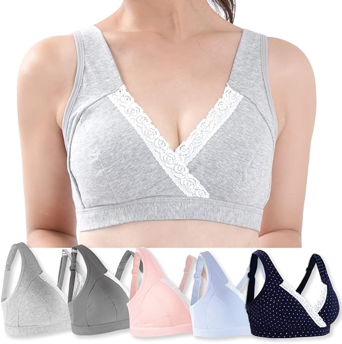 お得な5枚セットのマタニティブラ。延長ホック付きなので産前産後の体形の変化にも対応できます。
