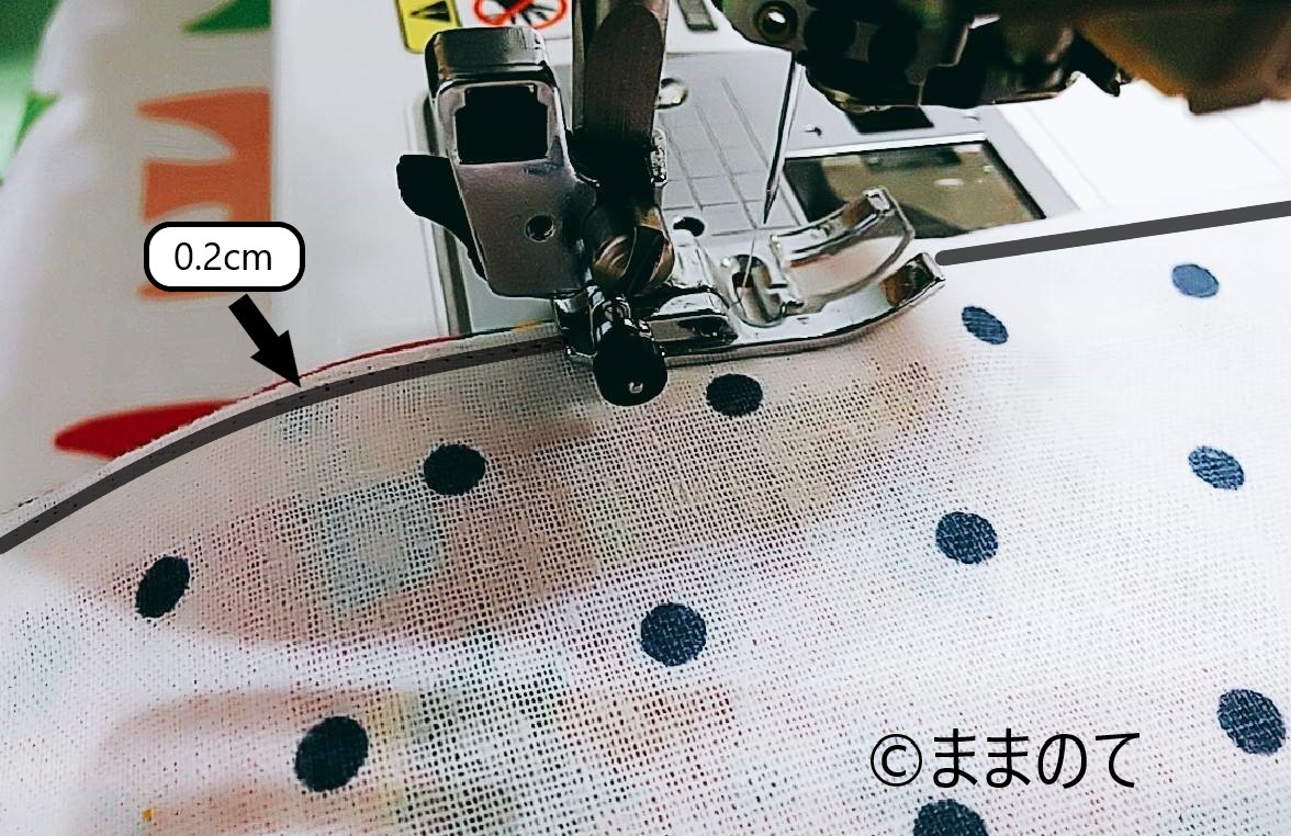 端から0.2cmのところにステッチをかけ、ランチマットを補強します。