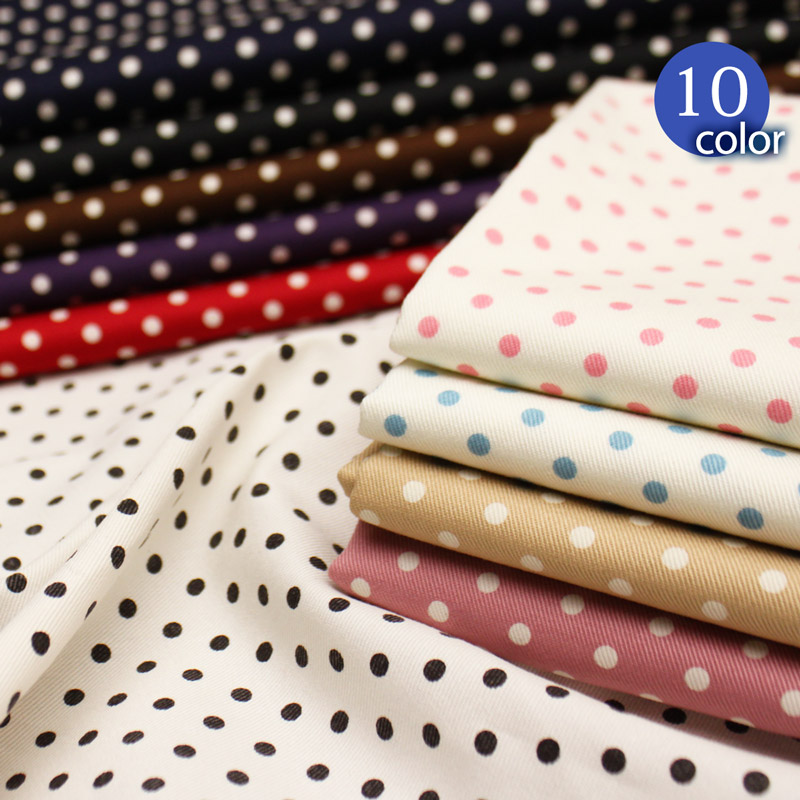 裏地付きのランチマットを製作する場合、裏面はシンプルな柄にするとおしゃれに仕上がります。ブロードの水玉・ドットプリント生地は、さまざまな色と柄が用意されているため、表の生地に合ったデザインを選べると良いですね。