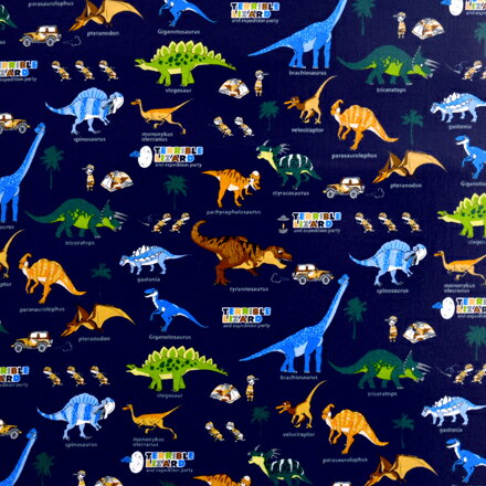 男の子に人気が高い恐竜柄のビニールコーティング加工された生地です。水を弾きやすいため、汚れてもさっと拭くだけで清潔に保つことができます。