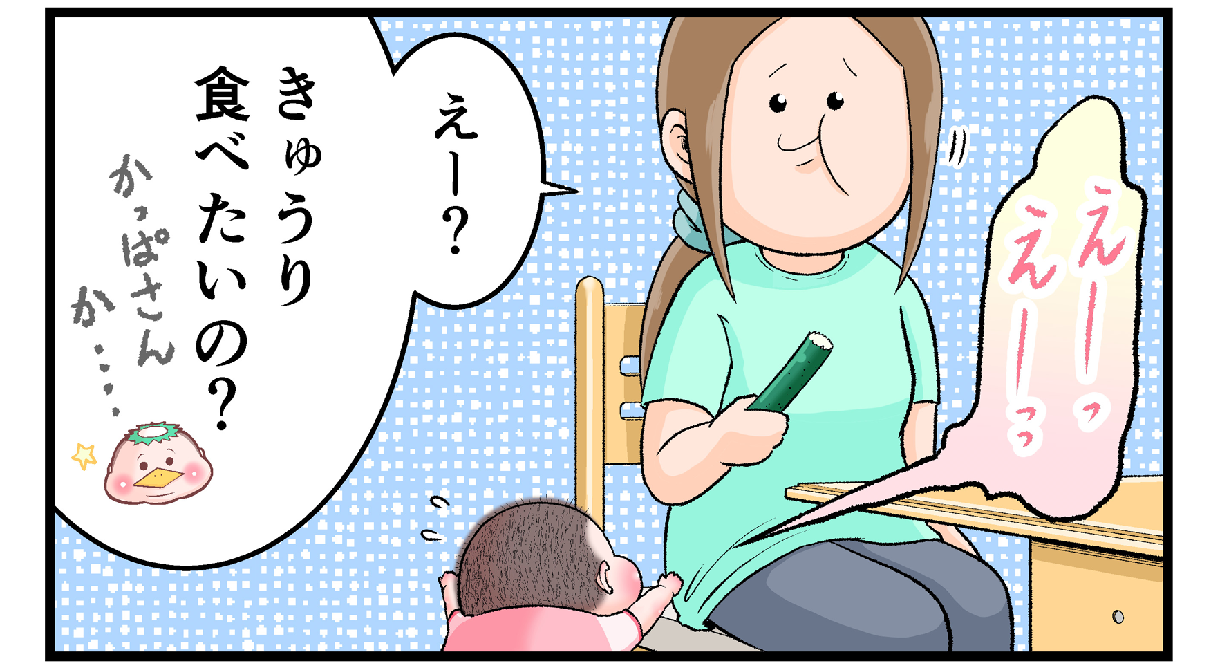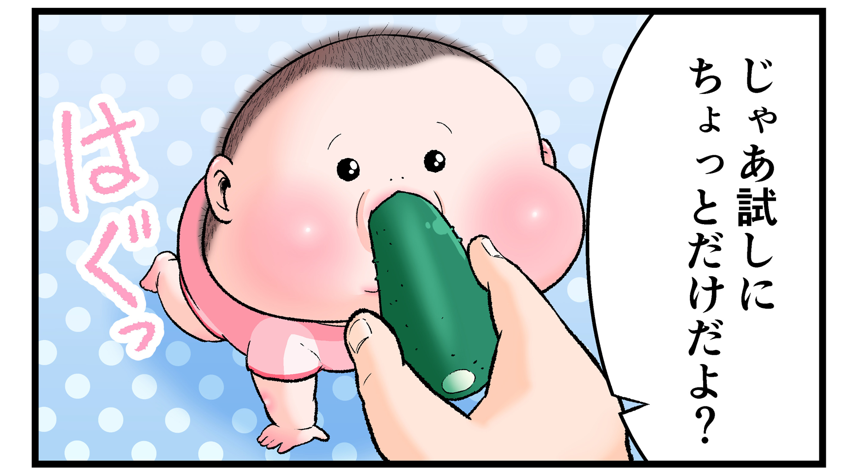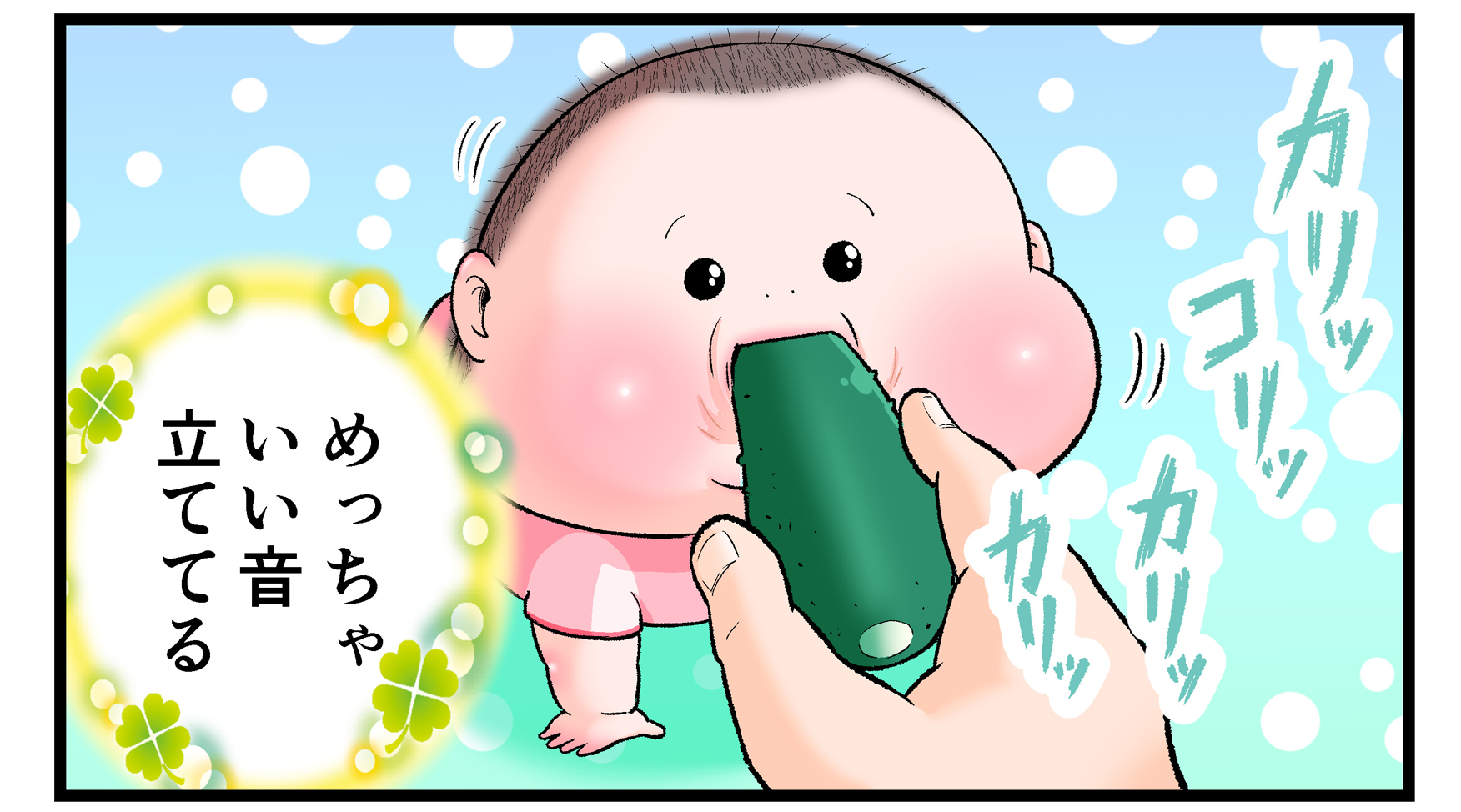 Twitterで大人気の、ぷにぷにほっぺの‟ぷにおくん”。ママが食べている「きゅうり」が気になって…!?