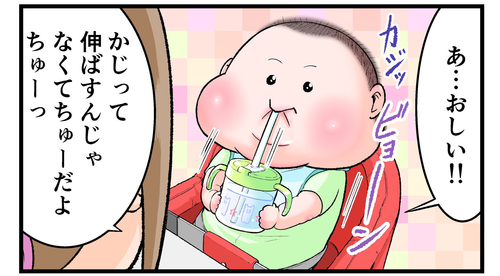 Twitterで大人気の、ぷにぷにほっぺの‟ぷにおくん”。なかなかうまくいかないストロー飲みに奮闘です!