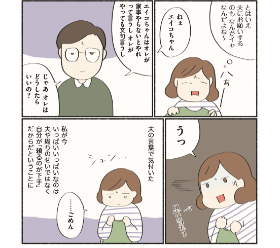 パパが少し家事を手伝ってくれるようになったけれど、なかなかオキさんの思うようには家事が進まない現実。そして、つのるイライラ…。