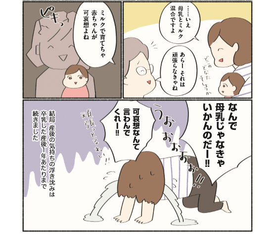 著者・オキさんも、知らない女性からの何気ない「あら?母乳?」の一言で、気持ちが浮き沈みした体験を描いています。