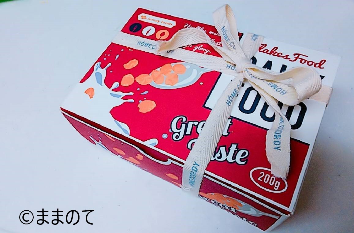 100均のランチボックスに、リボンを飾ったラッピングアイデアです。さまざまなデザインや大きさのランチボックスがあるため、贈りものに適したタイプを選びましょう。