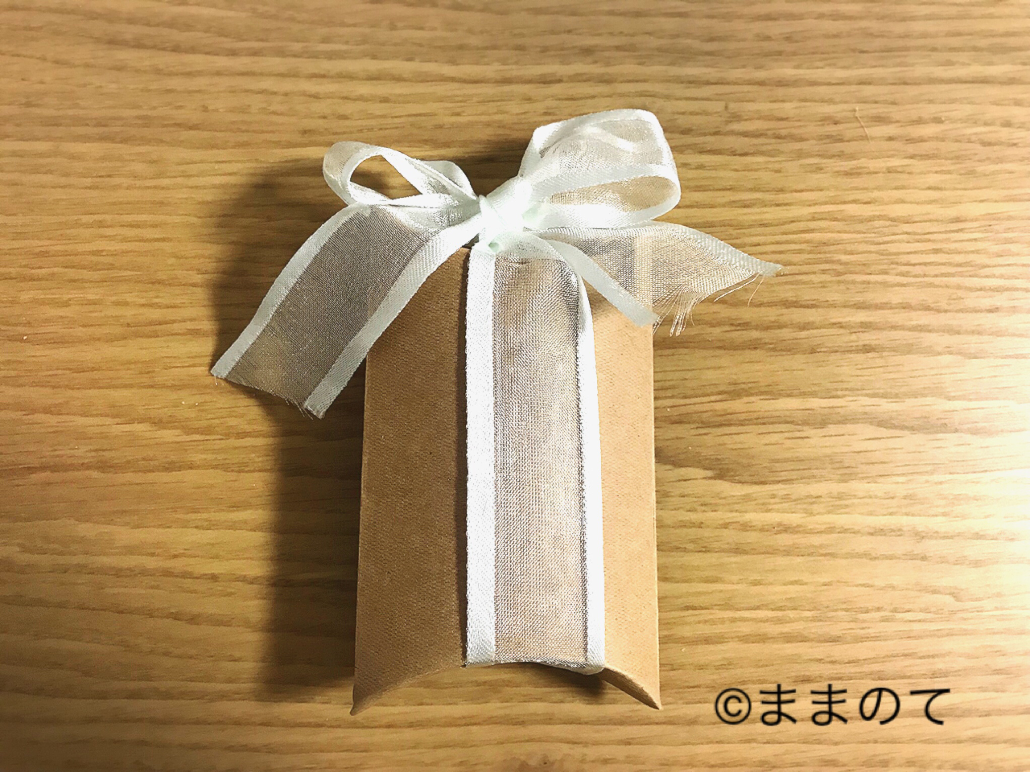 ふたの付いていない箱にお菓子を入れ、透明のビニール袋や包装紙などで包むラッピングアイデアもおすすめです。ビニール袋の両端をリボンで束ね、キャンディーに見立てても良いでしょう。