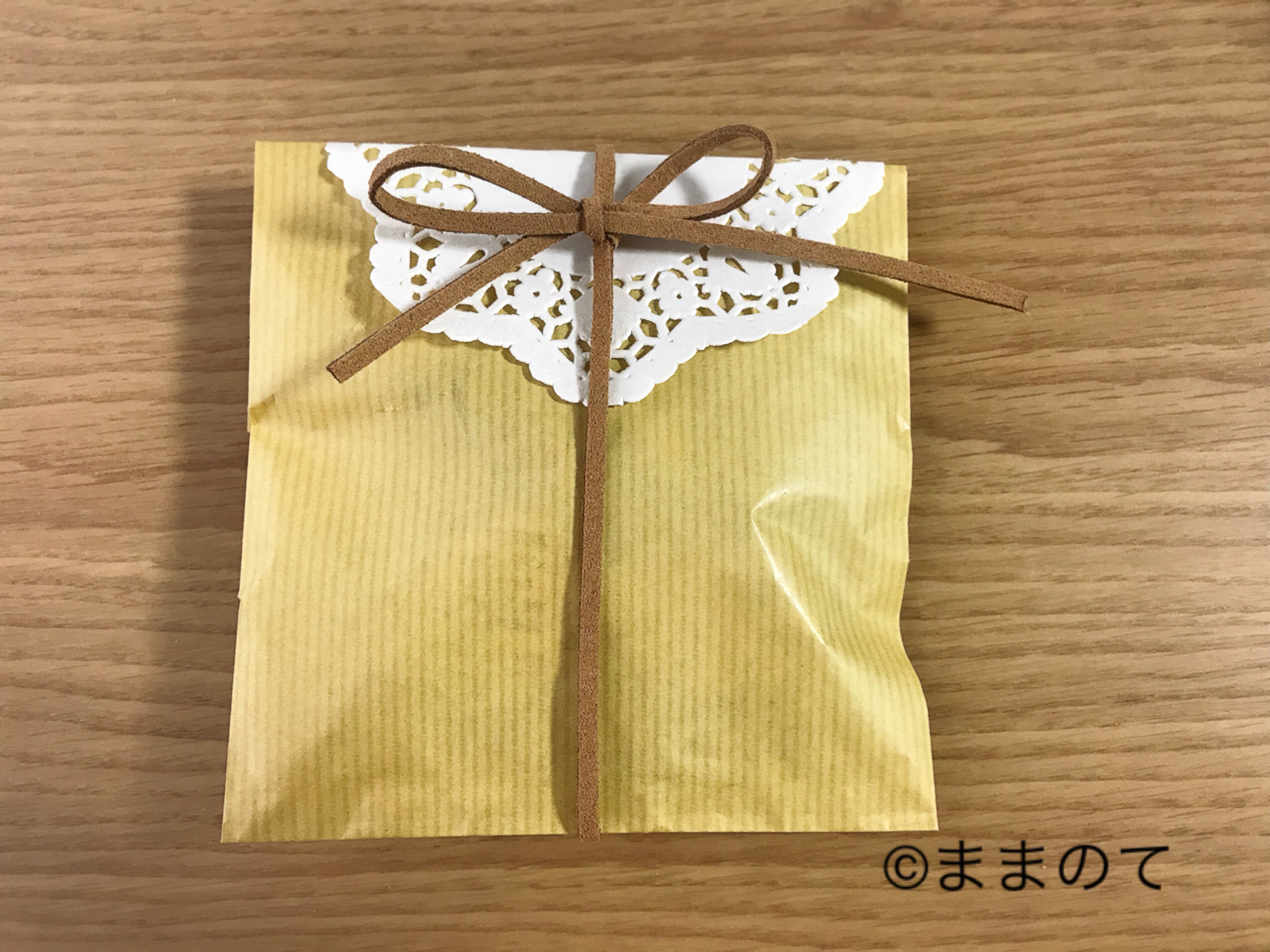 ダイソーやセリアなどの100均は、かわいいジップ付きラッピング袋の種類が豊富です。好みにより、袋にリボンを飾っても良いでしょう。