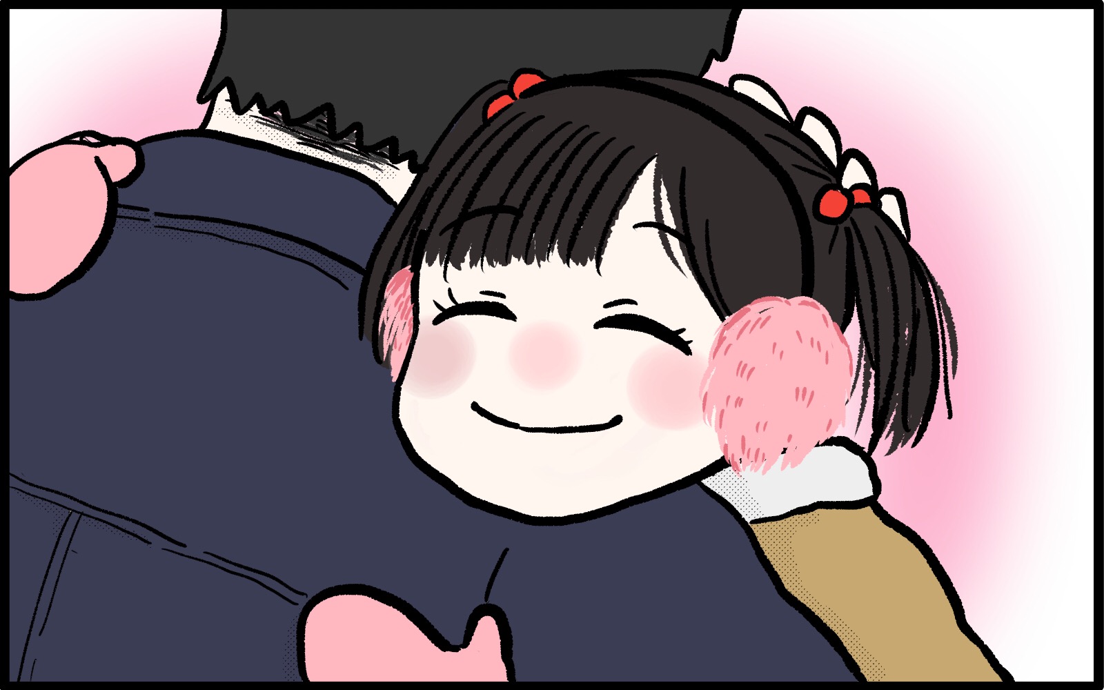 おおげさにハグして頭をくしゃくしゃなでてあげました。
