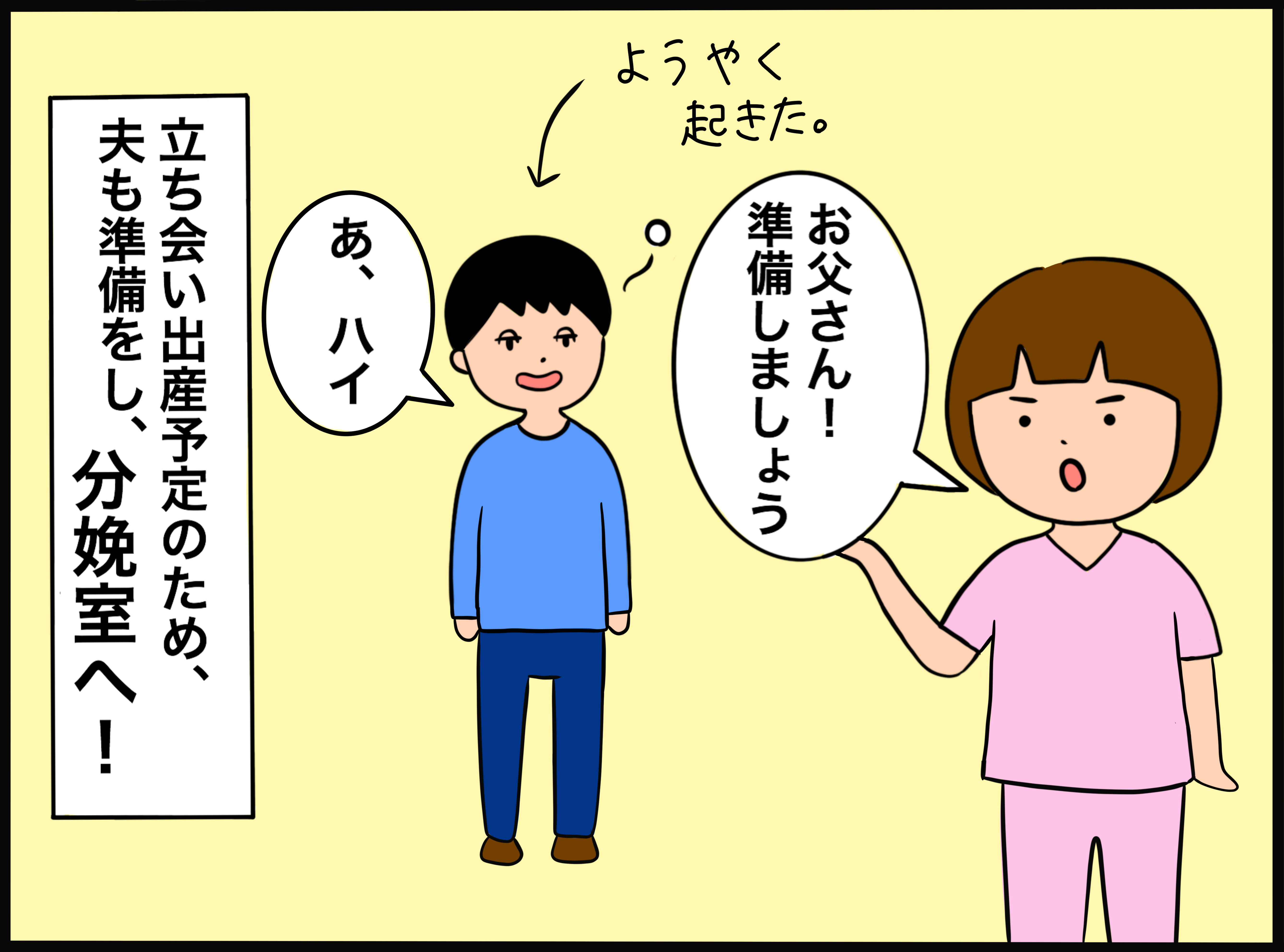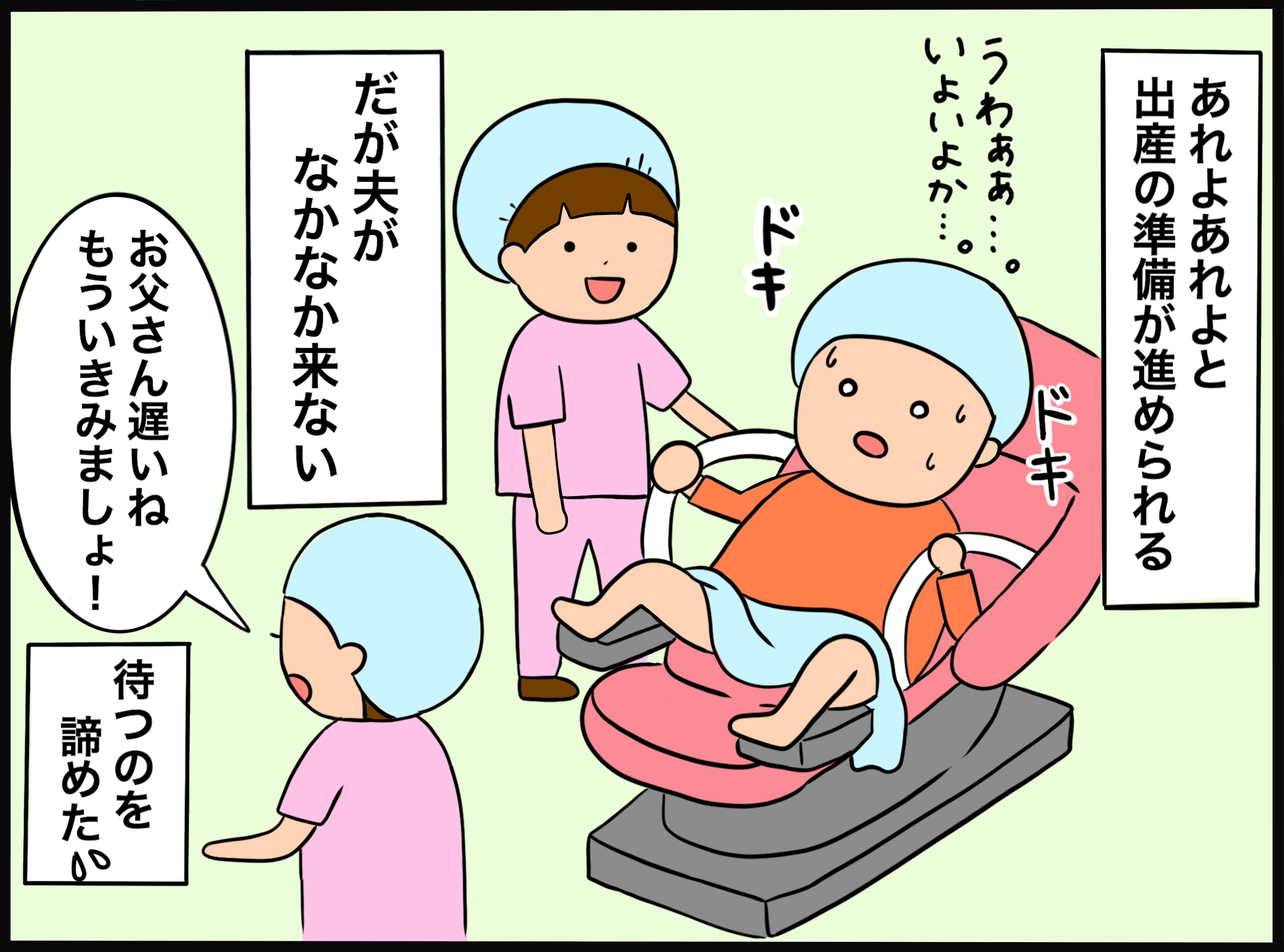 子宮口が全開になったら、医師や助産師が出産の準備を進めます。助産師の指導のもといきみます。