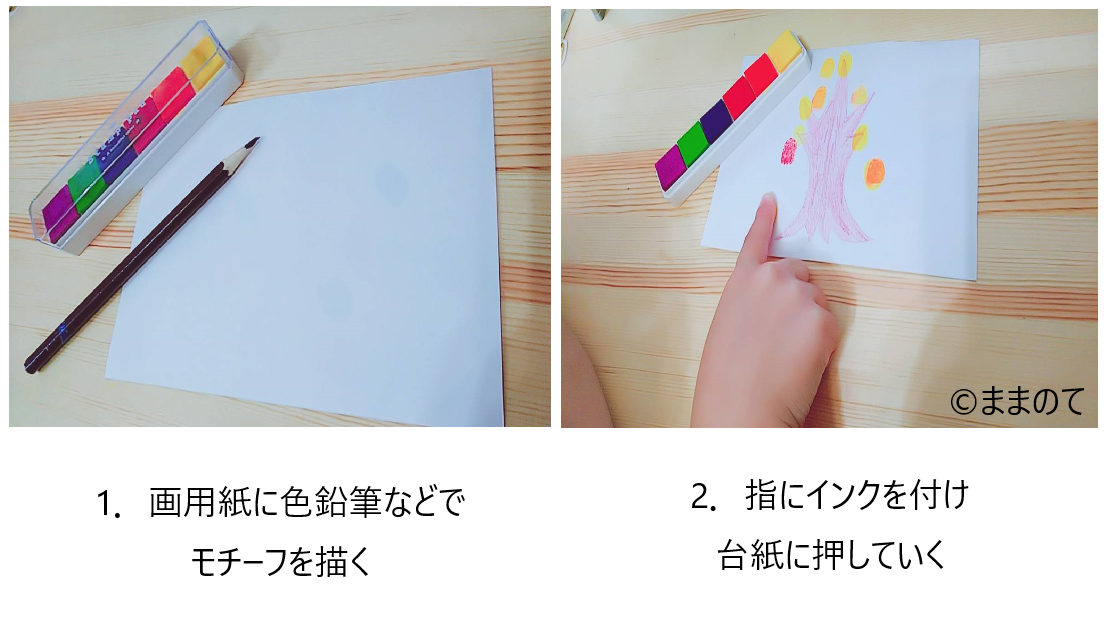 2.指にインクを付け、台紙に押していく