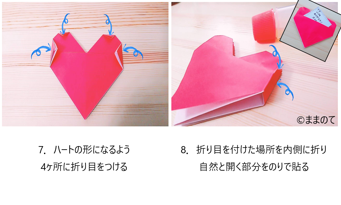 7.ハートの形になるよう、4ヶ所に折り目を付ける