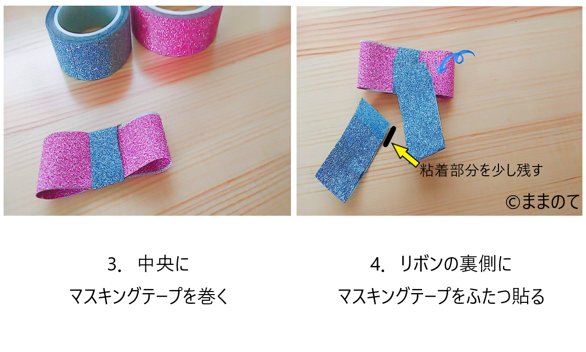 4.リボンの裏側にマスキングテープをふたつ貼る