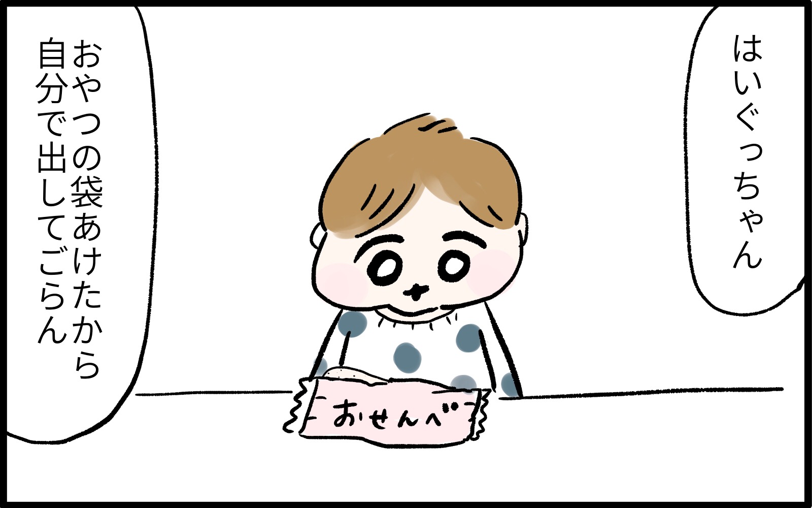 Instagramで大人気のchiikoさんの育児マンガ!おやつの袋をあけて息子に渡してみたら…?